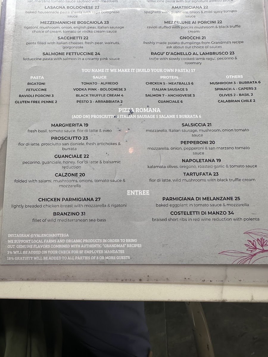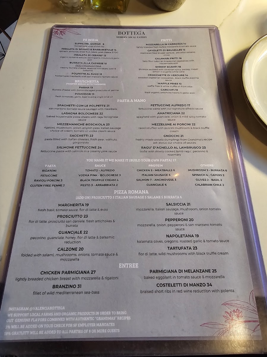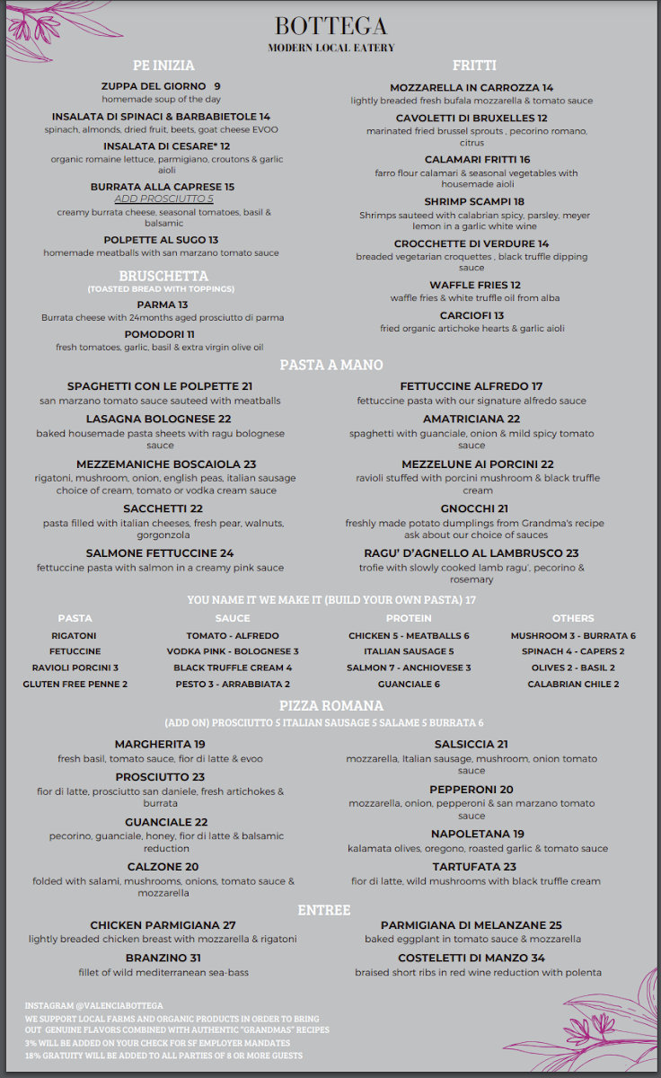 Bottega - CA 94110 Menu